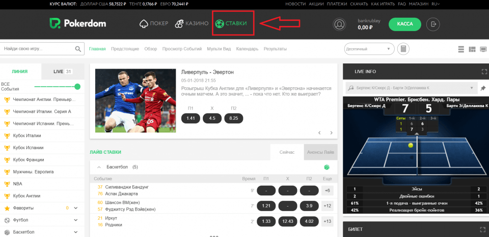 Для всех пользователей PokerDom действует принцип общего аккаунта, поэтому клиентам покер-рума не нужно создавать новую учетную запись для спортивного беттинга. Игроки, которые еще не проходили регистрацию на сайте оператора, должны создать аккаунт, чтобы получить доступ к предложениям букмекерской площадки.
