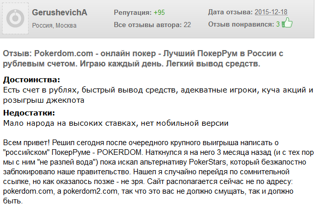 В первые годы работы оператора поток критики в его адрес был достаточно бурным, но со временем многие недовольства потеряли актуальность. Поэтому при изучении отзывов о PokerDom на различных форумах и в группах следует обращать внимание только на свежие публикации.